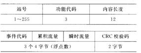 通信內容:事件代碼、累積流量、瞬時(shí)流量共3個(gè)數據。通信長(cháng)度為17個(gè)字節,其格式為: