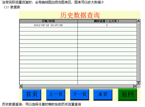 三、現場(chǎng)安裝注意事項 如果是梯型渠道需要現在沒(méi)通水情況下現場(chǎng)進(jìn)行安裝。 安裝說(shuō)明: 首先選好安裝傳感器的位置,一般要求安裝點(diǎn)之前有10倍的渠寬距離、之后有5倍的渠寬距離,這樣可以保證測量點(diǎn)水流的穩定性; 為了保證信號傳輸的穩定性,顯示儀表盡量就近安裝,傳感器與主機距離應小于200米,主機如不能放在室內應該增加室外儀表箱。 四、人機界面截圖說(shuō)明 |