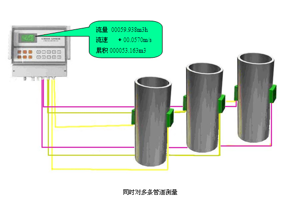 在滿(mǎn)管流的條件下可以使用多聲道超聲波流量計,同時(shí)對多條管道巡回測量,每條管道安裝一組傳感器,可以采用外卡式也可以采用插入式,管徑大小可以有所不同,每條被測管道都有獨立參數設置。測量數據既顯示當前測量管道的流量也可顯示所有被測量管道的總流量,每個(gè)通道都有獨立的電流輸出。特別適合各種給排水泵站的流量測量。